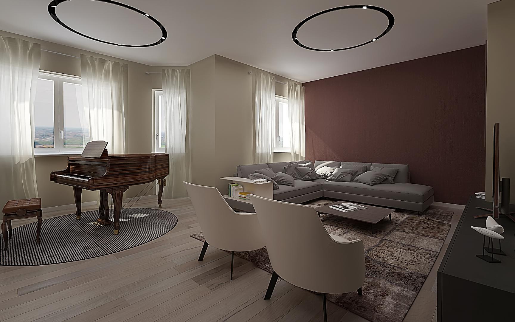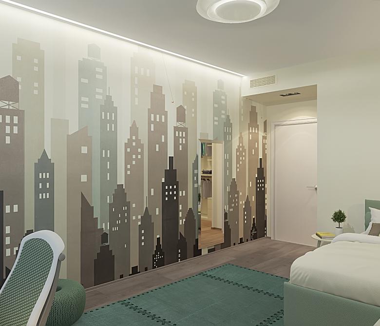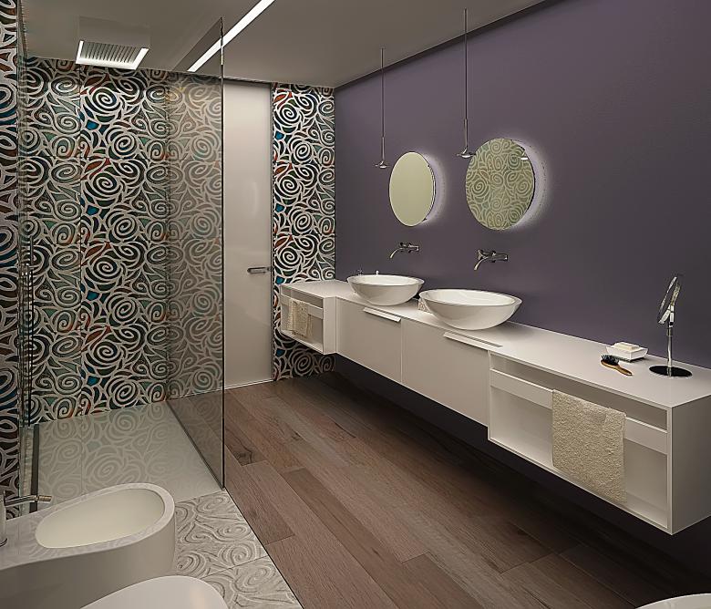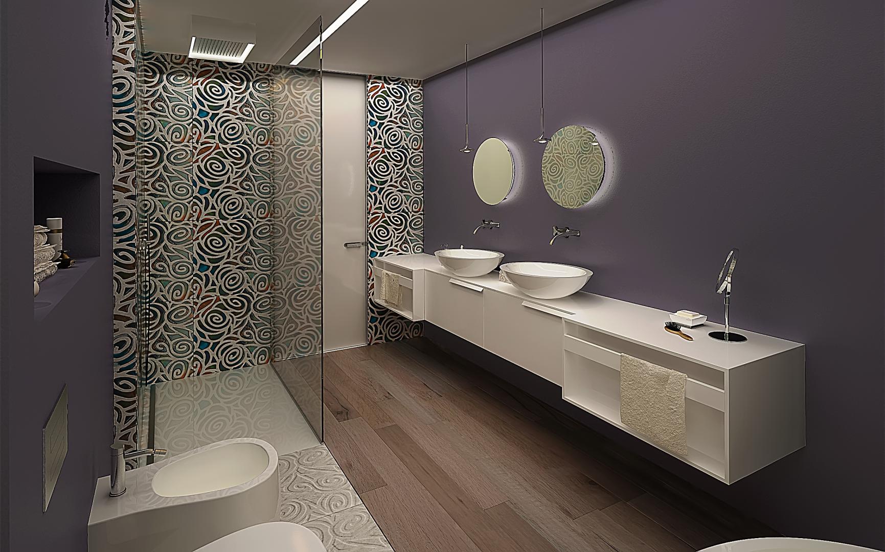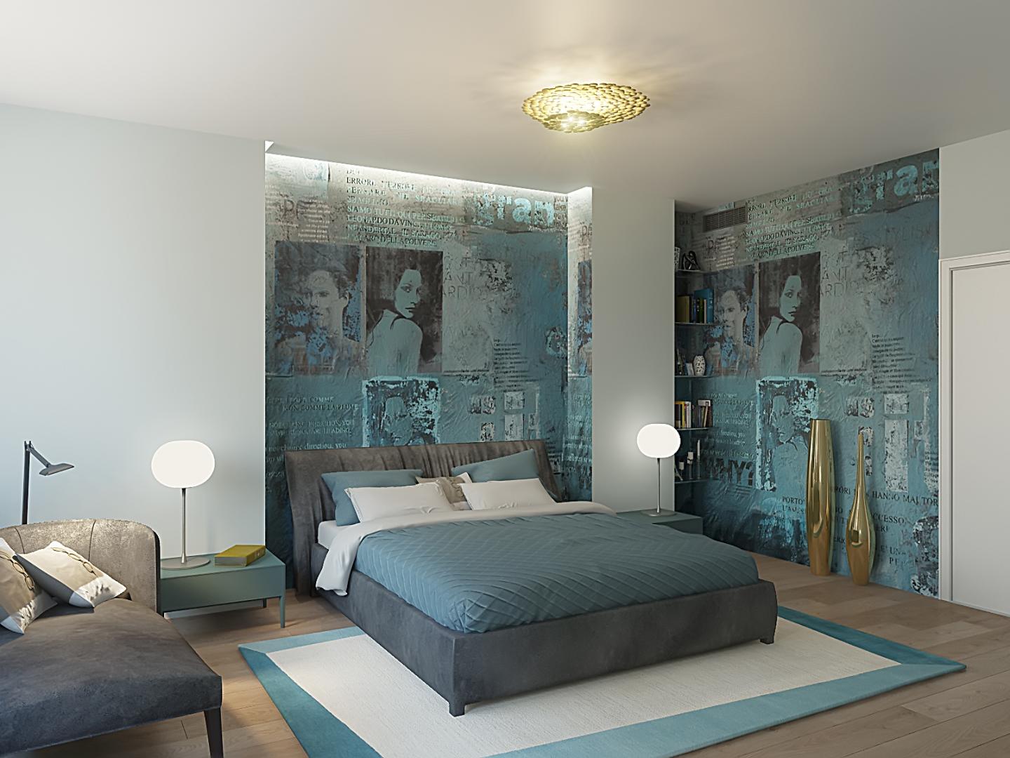 La camera nelle tonalità dei beige con note di colore dell’azzurro avio, il bagno padronale una miscellanea di colori con alla base le tonalità neutre presenti nell’appartamento. Un accordo tra il gusto russo ed il gusto italiano.