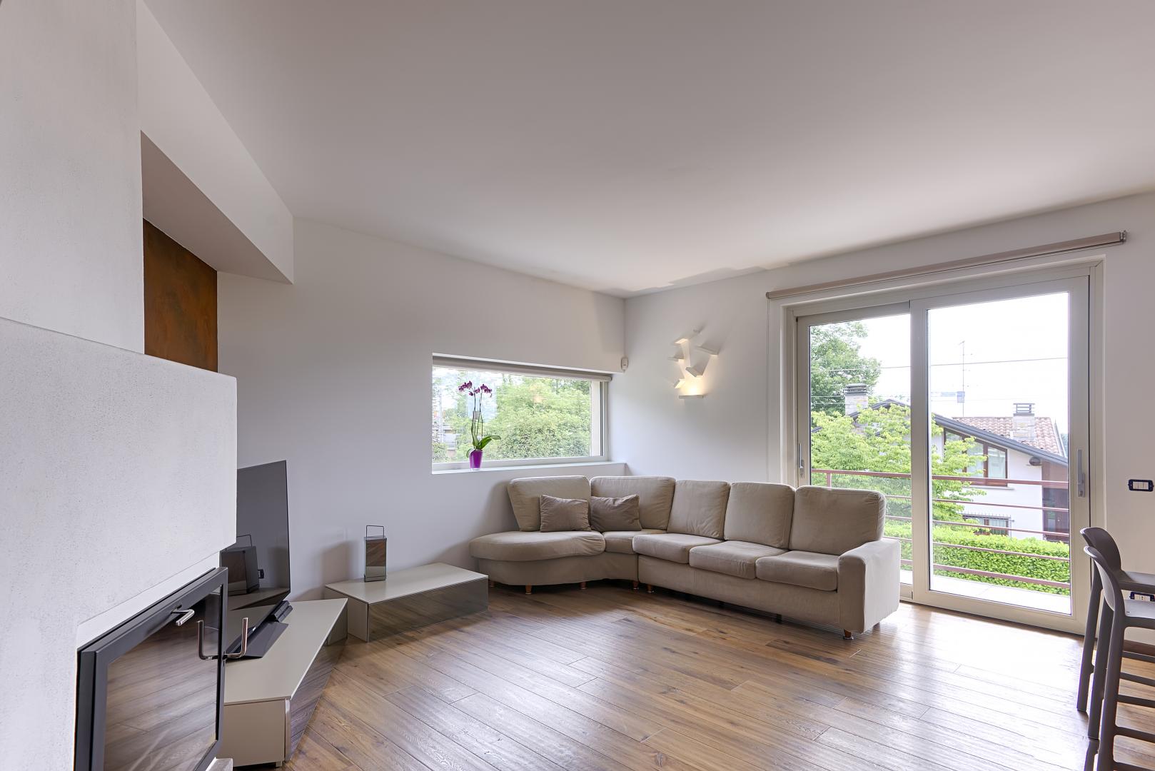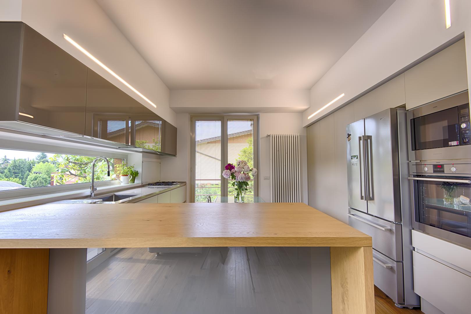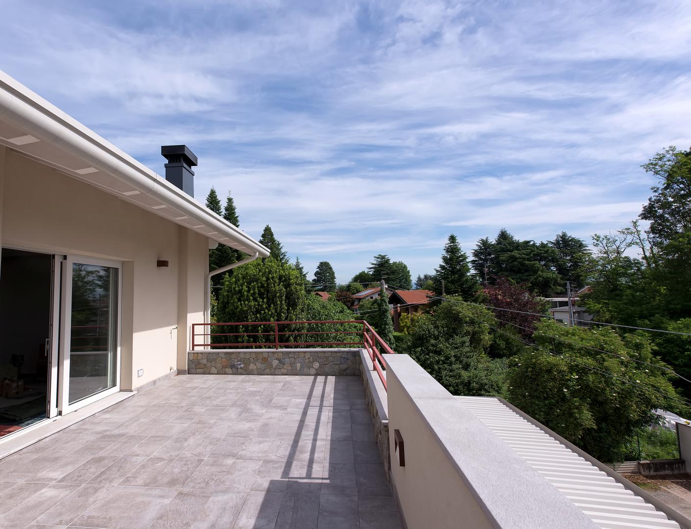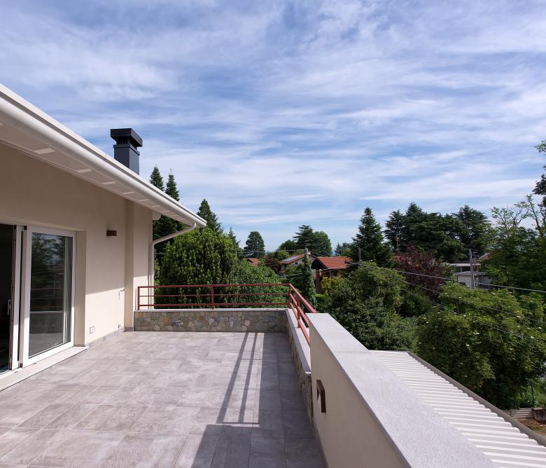 L’ampio pergolato per espandere all’esterno gli spazi della vita quotidiana.