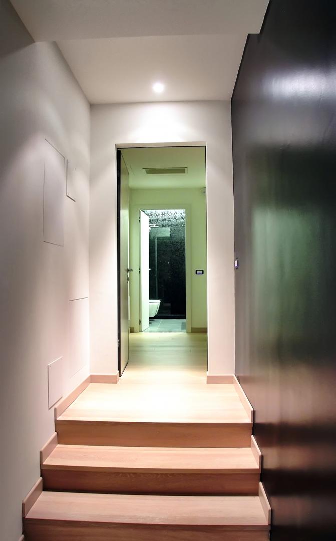 Il progetto “apre gli spazi”: scorci passanti che ci proiettano verso l’esterno, linee di progetto che mettono in comunicazione gli ambienti, disimpegni e scale diventano elementi di congiunzione e dilatazione tra i piani orizzontali e verticali.