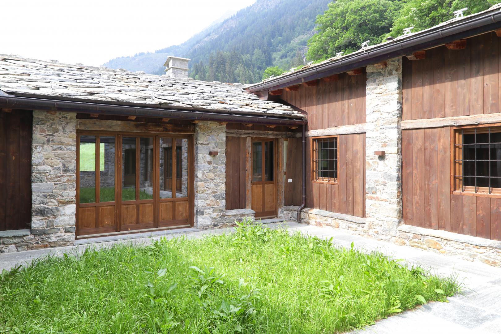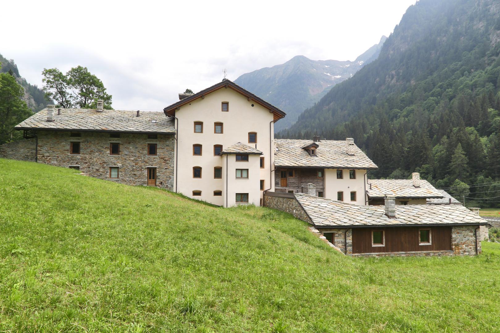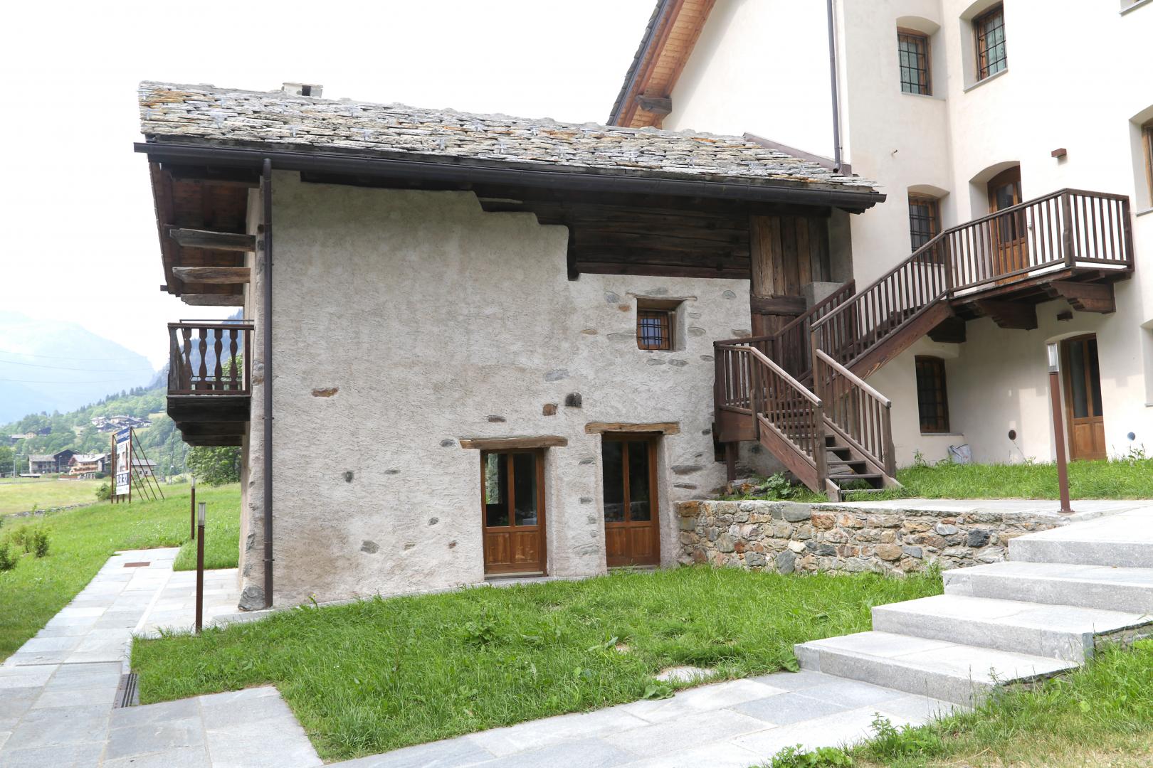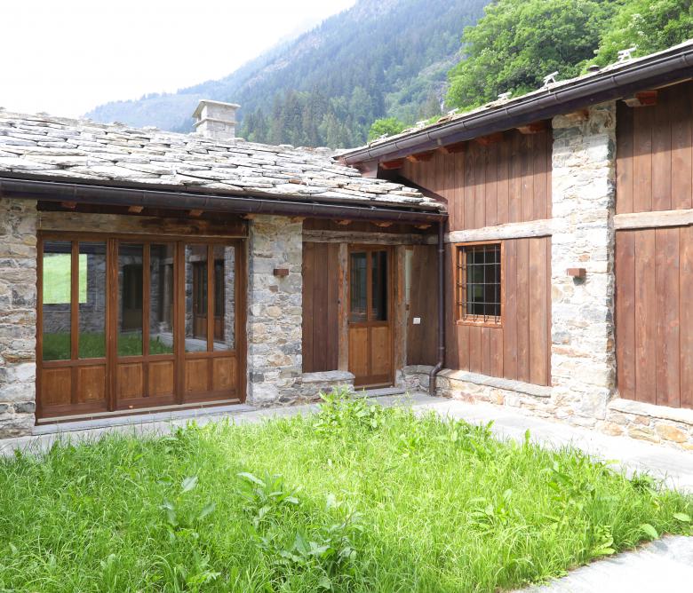 Progettazione e Direzione Lavori di un edificio di pregio con annesse stalle e rascard, riconvertito in edificio plurifamiliare con appartamenti per le vacanze.