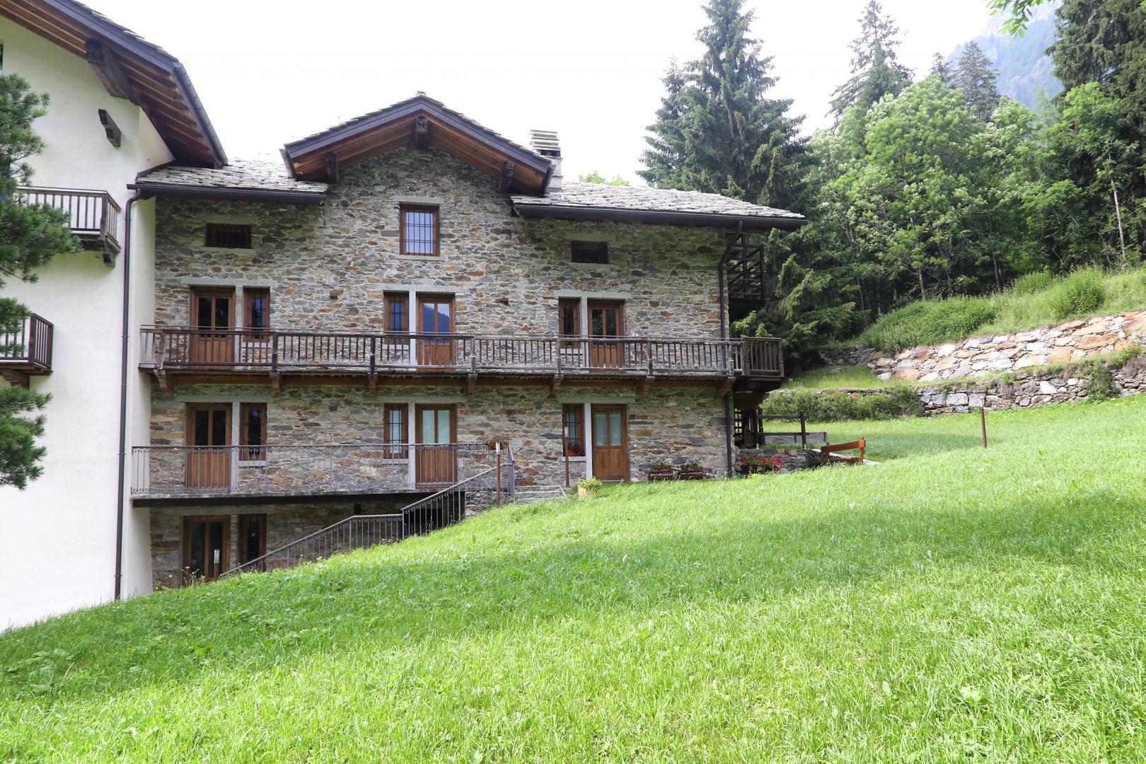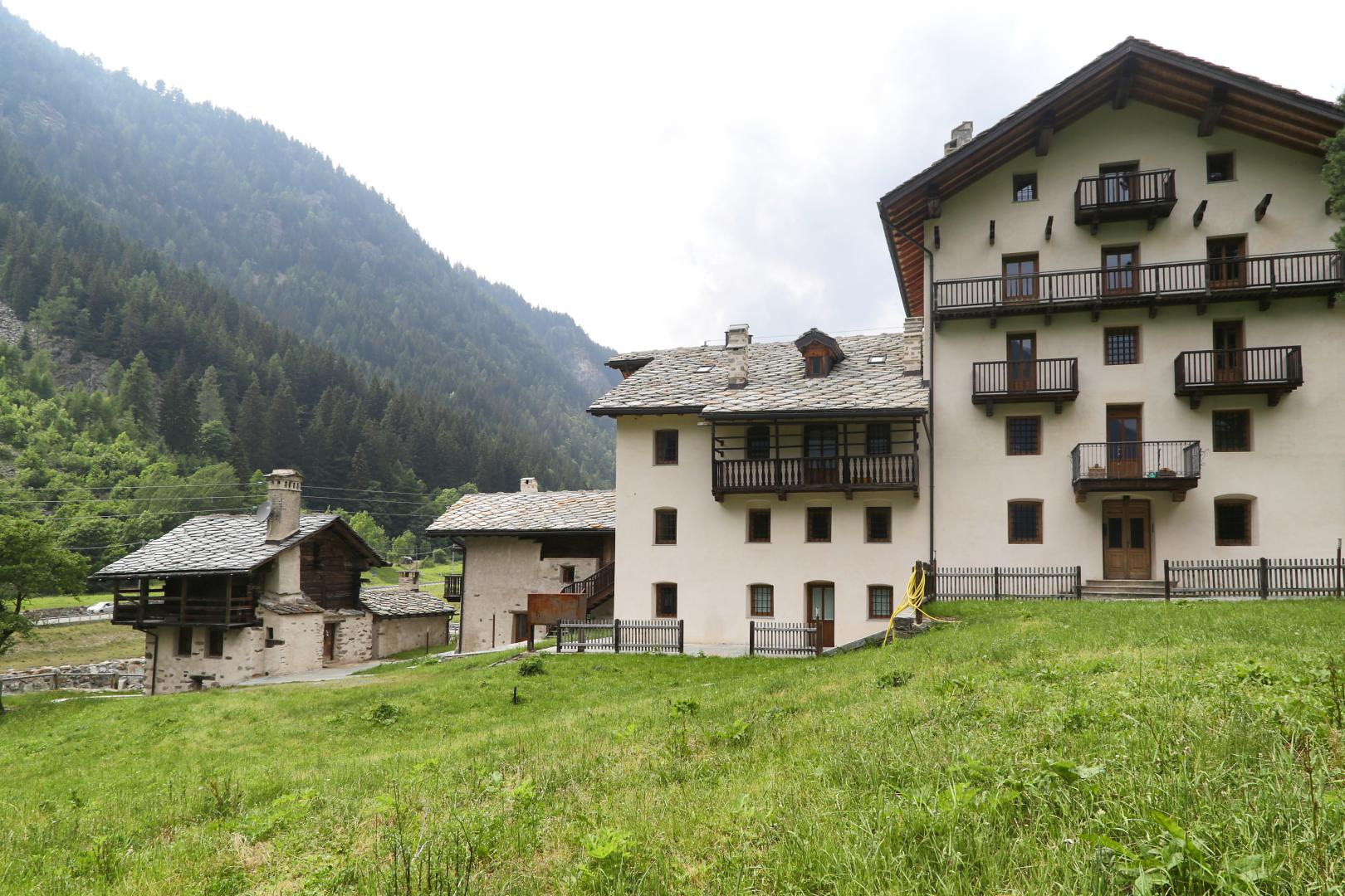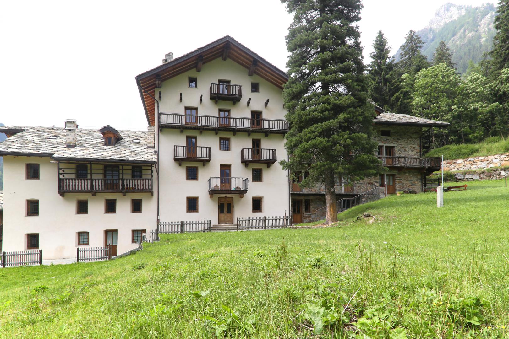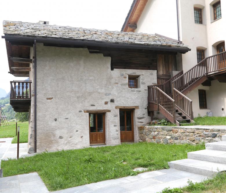 Progettazione e Direzione Lavori di un edificio di pregio con annesse stalle e rascard, riconvertito in edificio plurifamiliare con appartamenti per le vacanze.